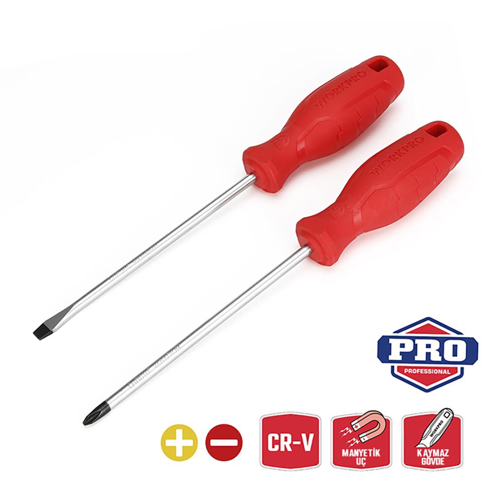 WORKPRO WP200500 2 Parça Yıldız/Düz CR-V Manyetik Profesyonel Tornavida Seti